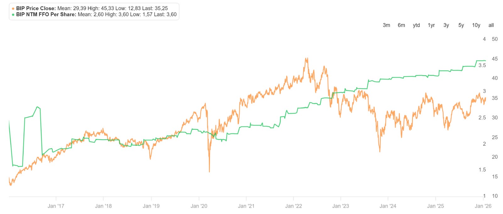 De acuerdo a la previsión de crecimiento y rotación de la empresa, que ya estamos empezando a ver gradualmente materializado en este último Q4, pensamos que el mercado no está poniendo a BIP en precio.