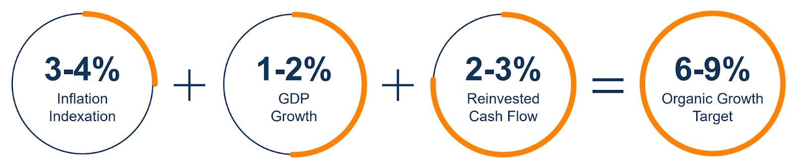 FFO: +6%. El Funds from Operations ha escalado hasta los $2.627M. ¿De dónde sale este crecimiento? Han tenido un importante crecimiento orgánico (alineado con la imagen de abajo) y un impacto inmediato de las nuevas inversiones en midstream y data centers.