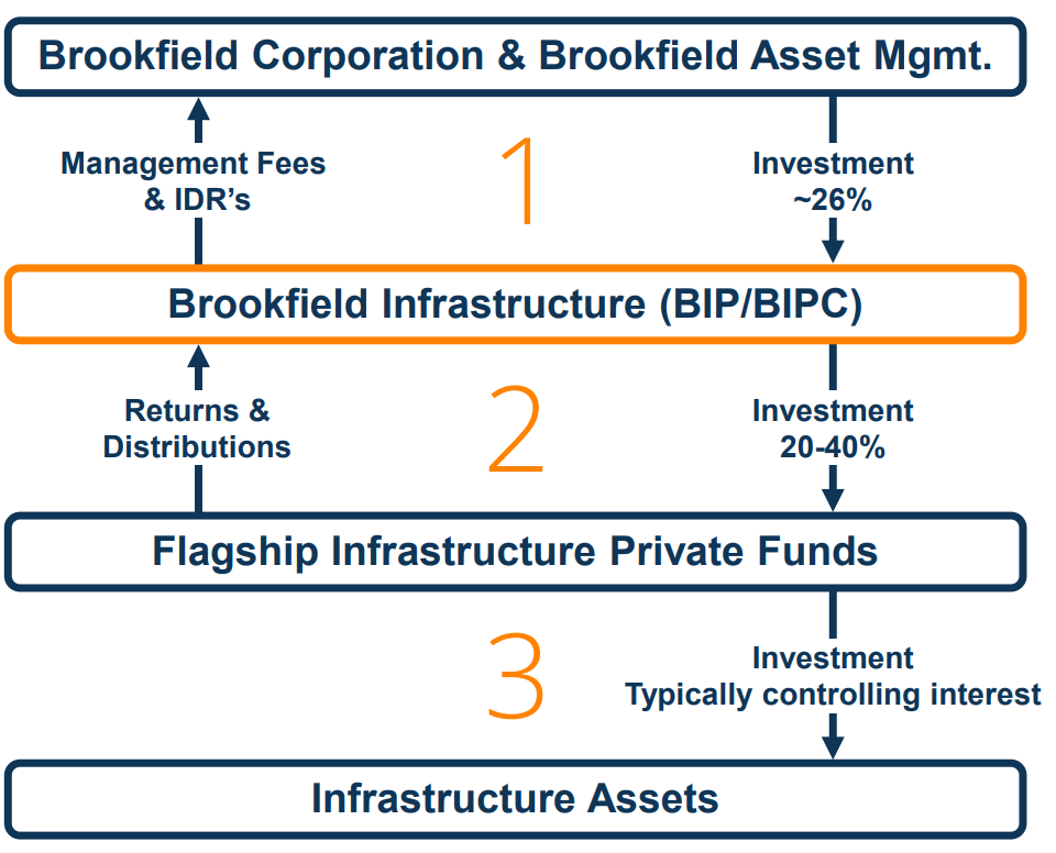 Para entender cómo encajan los engranajes del Ecosistema Brookfield, vamos a recordar cómo gana dinero realmente Brookfield Corporation a través de BIP.
